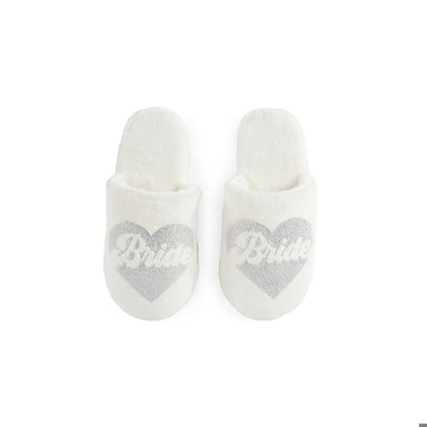 Celebrate the bride-to-be with these elegant "Bride" Heart Slippers! Wrapped in soft white plush with a dazzling rhinestone heart design, they’re p...